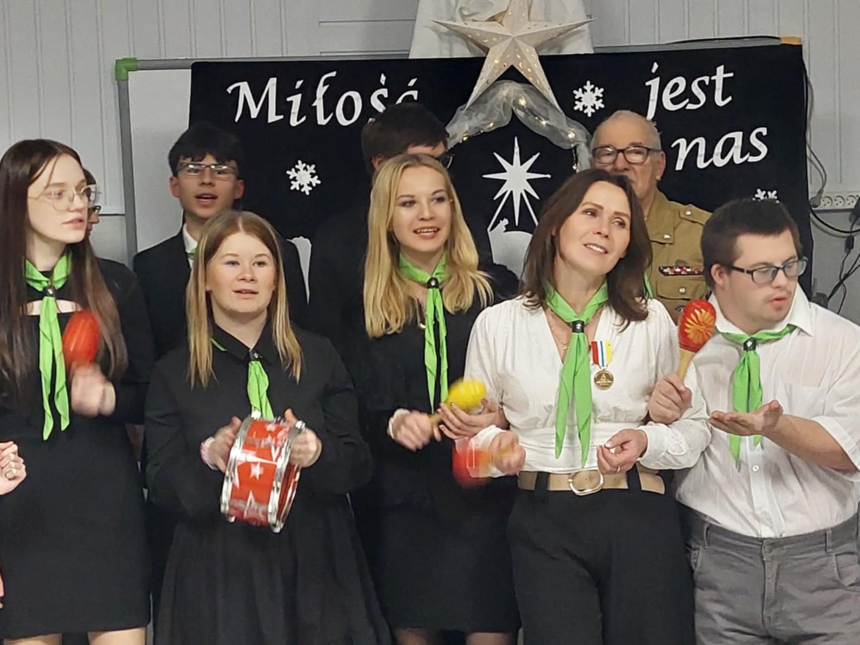 Następnie przekazałem dla Ośrodka oryginalną flagę papi4eską z herbem Jana Pawła II. Była wspólna modlitwa z ks. Henrykiem Bogdanienko proboszczem z miejscowej parafii, życzenia i opłatek przy Betlejemskim Światełku Pokoju, a także zbiorowy śpiew kolęd. Nie zabrakło prezentów i zabaw na wesoło. Najważniejsze były jednak harcerskie życzenia świąteczno-noworoczne. Czuwaj! Gość honotowy tego spotkania - Harcmistrz Ryszard Zawadowski Harcerz Rzeczypospolitej.