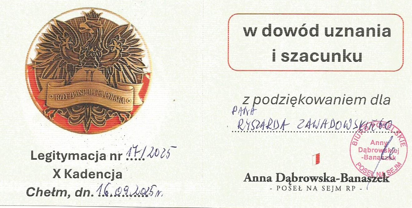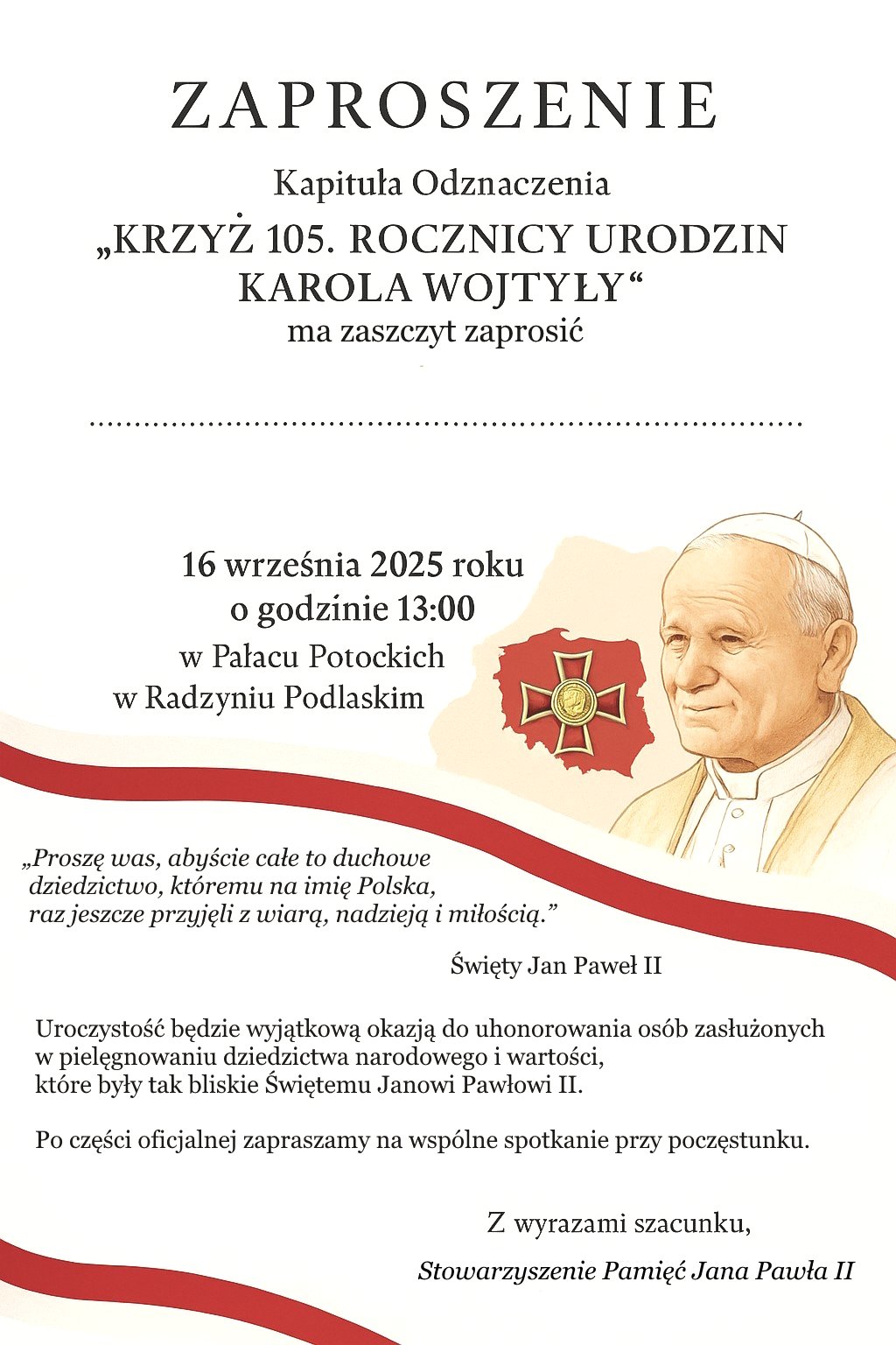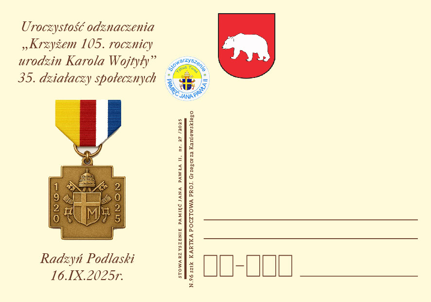 Jeszcze raz Serdeczny Bóg Zapłać dla Pana Prezesa i całej Kapituły Odznaczenia „Krzyża 105 rocznicy narodzin Karola Wojtyły - Św. Jana Pawła II w roku jubileuszowym”.